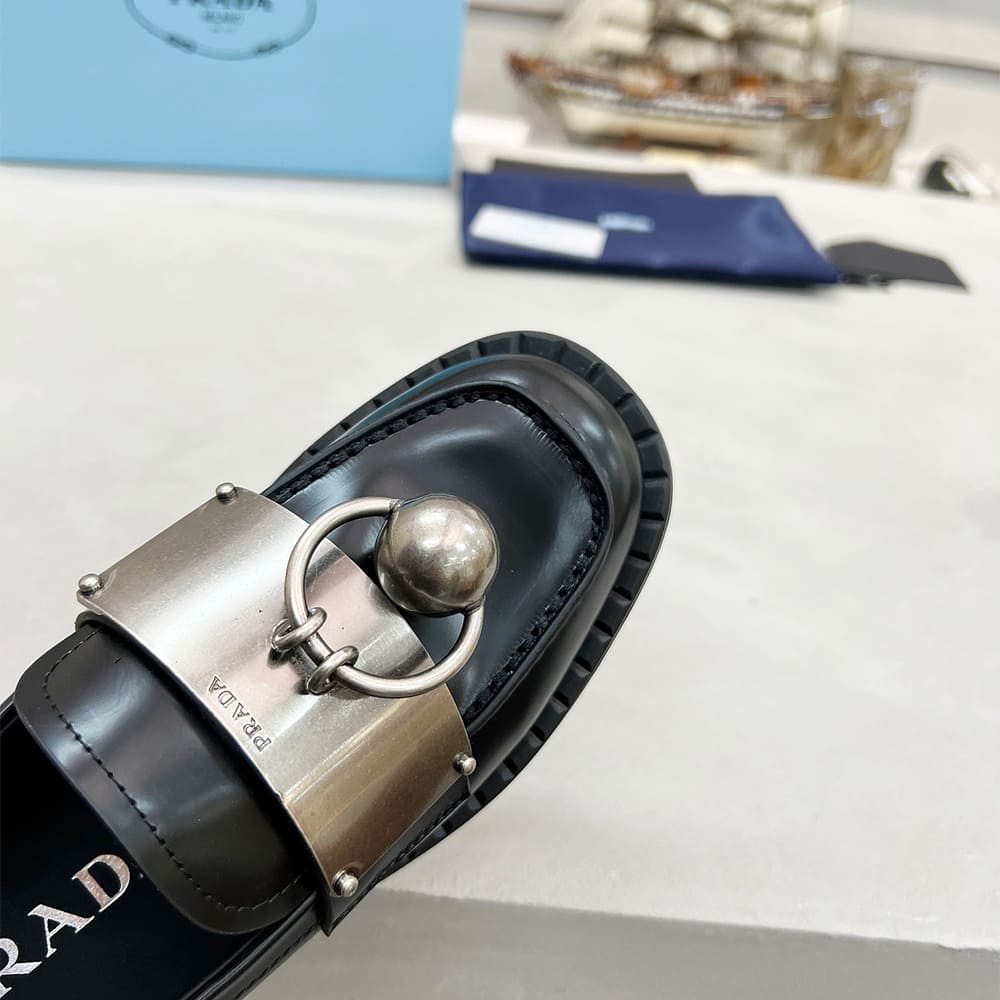 PRADA Brushed leather loafers with metal details
